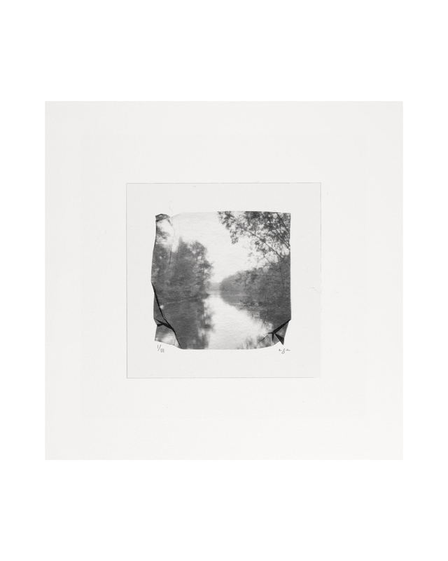 Réalisé à la main en laboratoire argentique, ce tirage procède du transfert d’émulsion, ou emulsion lift — une technique photographique consistant à détacher la fine couche d’émulsion contenant l’image d’un film instantané pour la transférer sur un nouveau support. Ce geste délicat donne à chaque œuvre un rendu singulier, marqué par des textures, des plis ou des transparences aléatoires qui témoignent de son caractère artisanal.