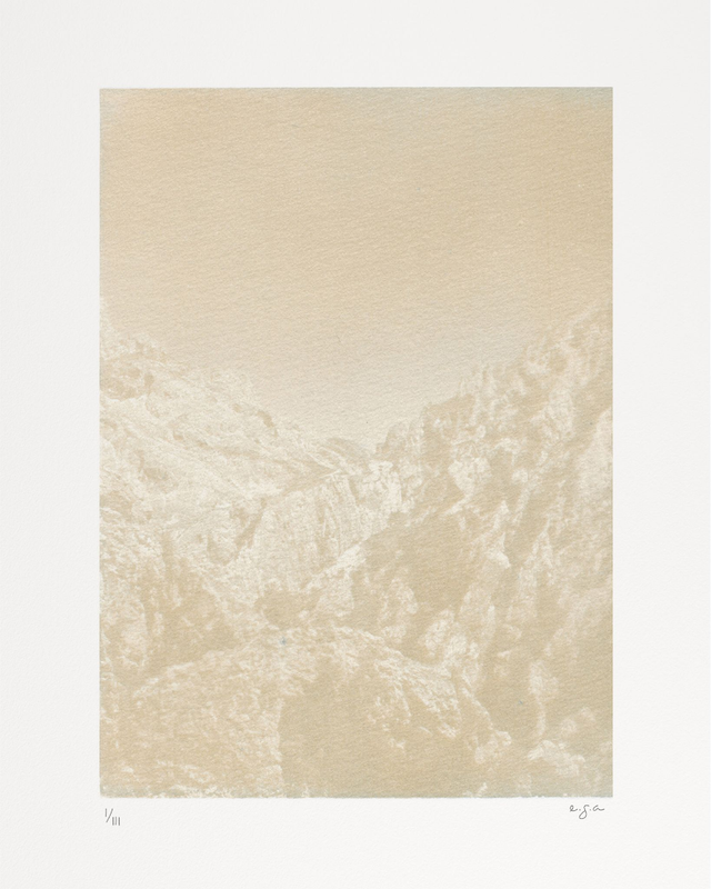 Réalisées en cyanotype duotone à partir de photographies de paysages, ces œuvres interrogent la frontière entre la photographie documentaire et l’illustration suggestive. En brouillant les repères visuels et en réduisant la palette à des tons minéraux, chaque image devient un territoire ouvert, à mi-chemin entre représentation et abstraction.