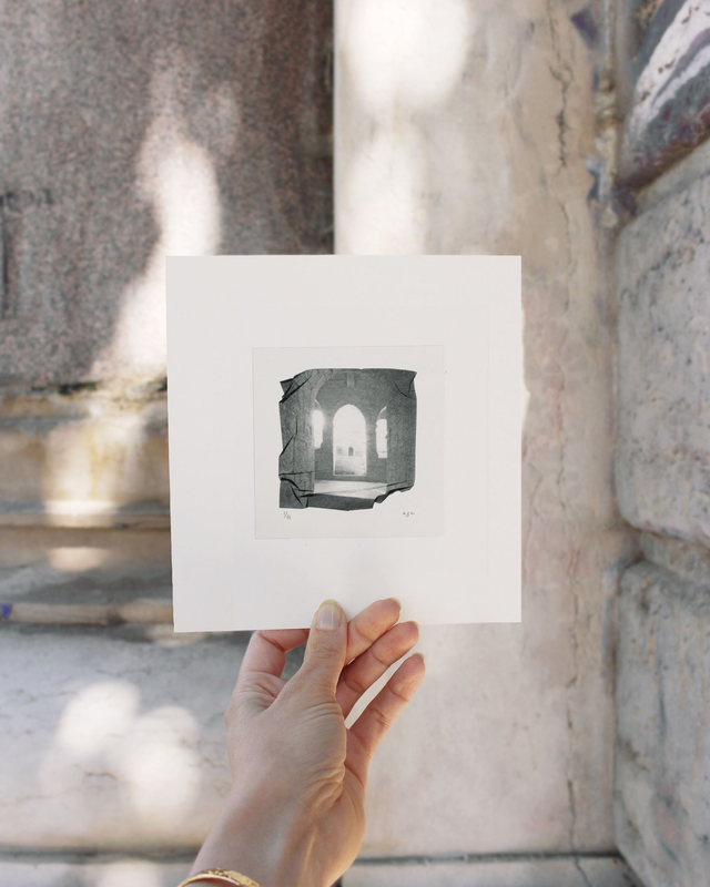 Chaque tirage est entièrement fait main, rendant chaque exemplaire unique. L’image livrée peut ainsi présenter de légères variations par rapport à celle visible en vitrine ou en ligne, soulignant la nature expérimentale et poétique de cette série inspirée par l’abbaye du Thoronet.